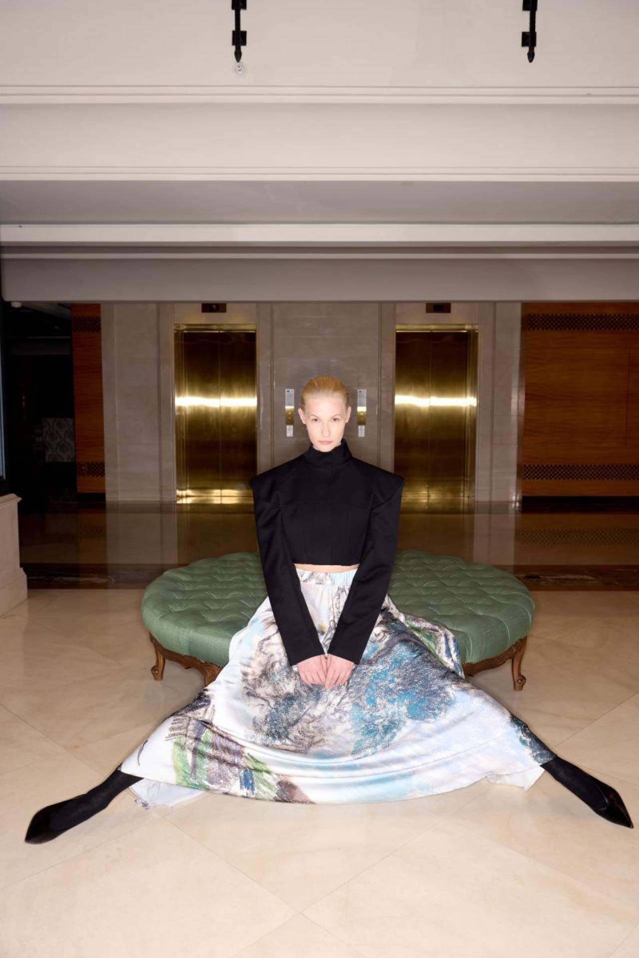 The silhouettes are relaxed yet intentional, designed to honour diverse bodies and personalities. Airy dresses echo the fluidity of brushstrokes; sculpted suits reinterpret landscape structures in abstracted tailoring; translucent layers and signature prints create the sense of standing inside a luminous canvas. Natural fibres – silk, linen, cotton and viscose – are chosen for their tactility, longevity and comfort, supporting a considered, seasonless wardrobe rather than fast-fashion turnover.